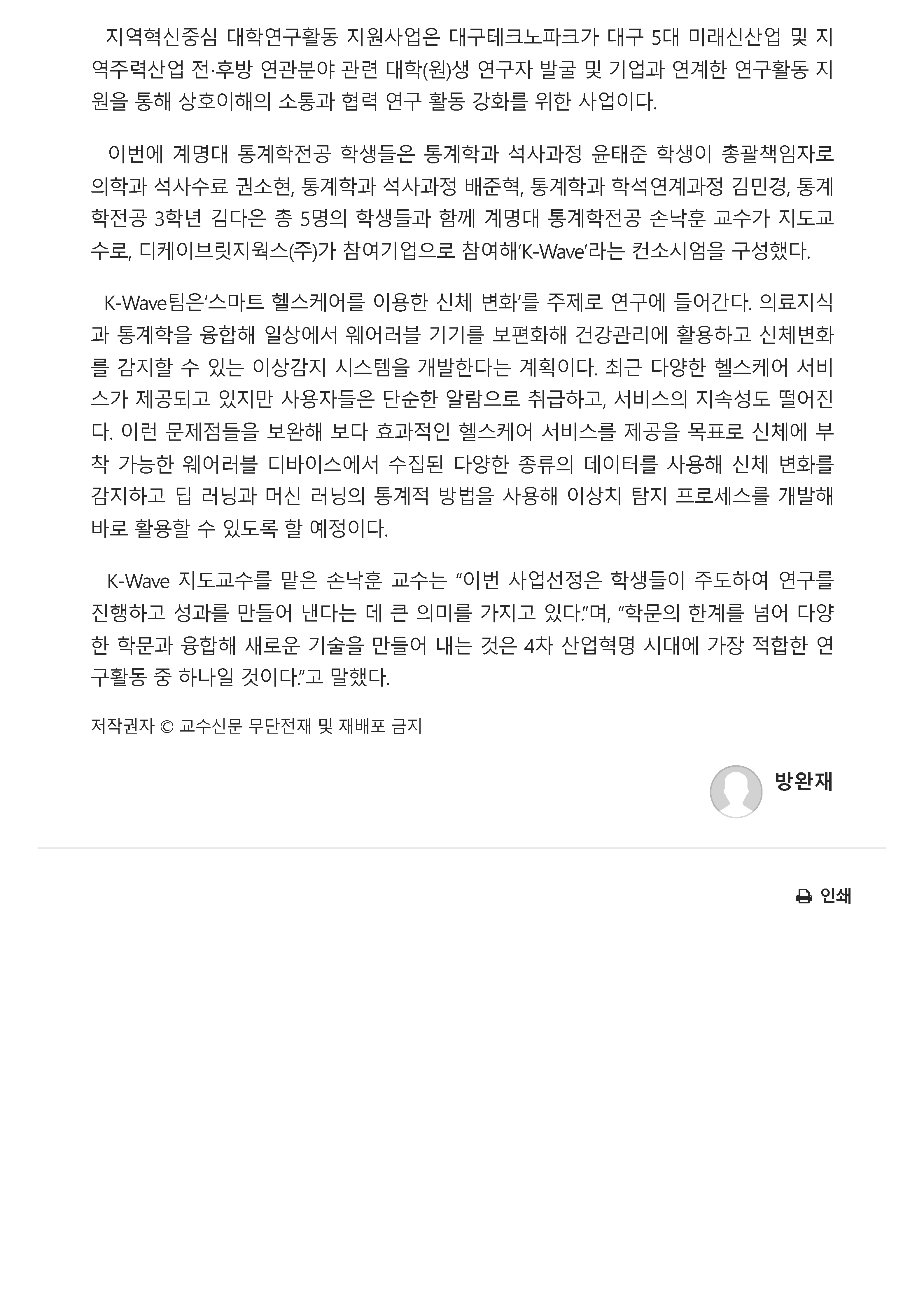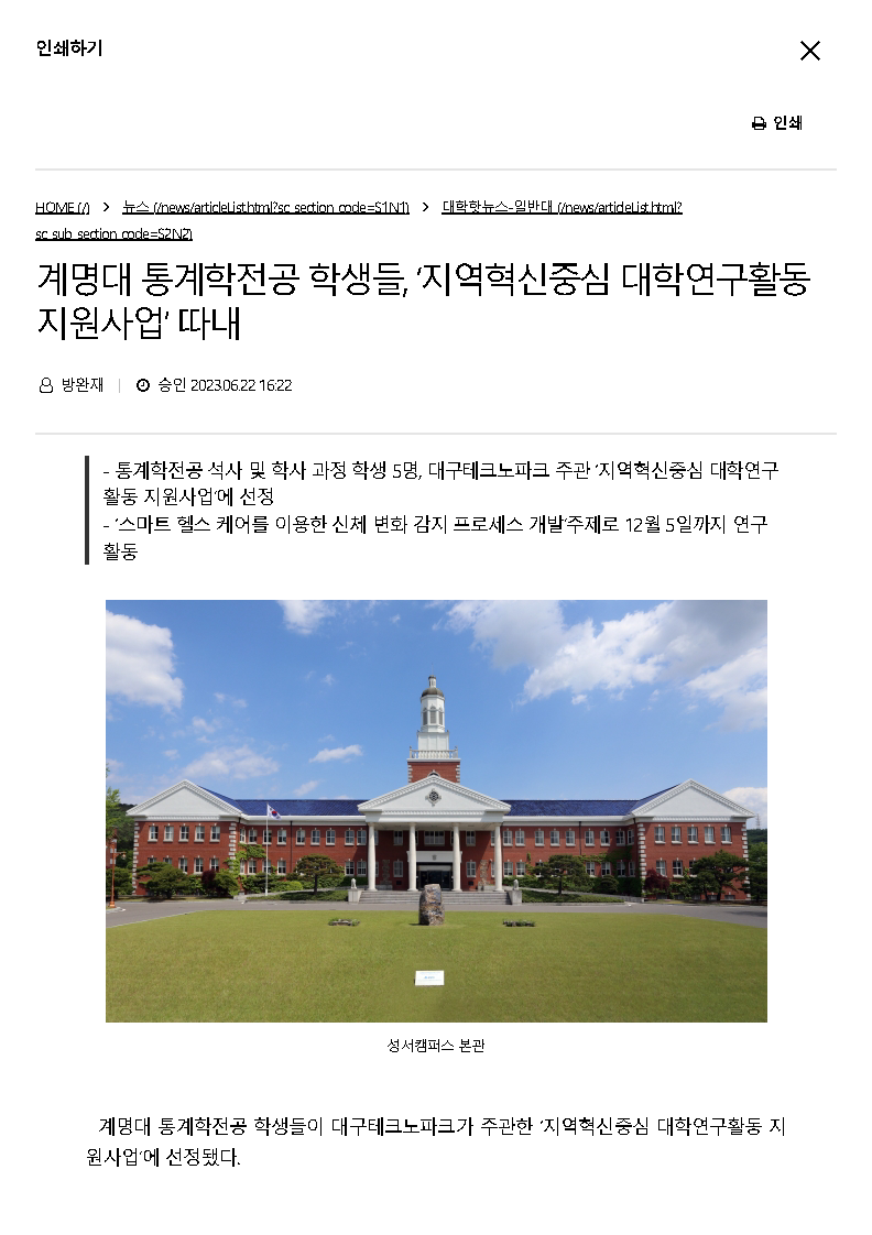 [전공 소식] 계명대 통계학전공 학생들, ‘지역혁신중심 대학연구활동 지원사업’ 따내