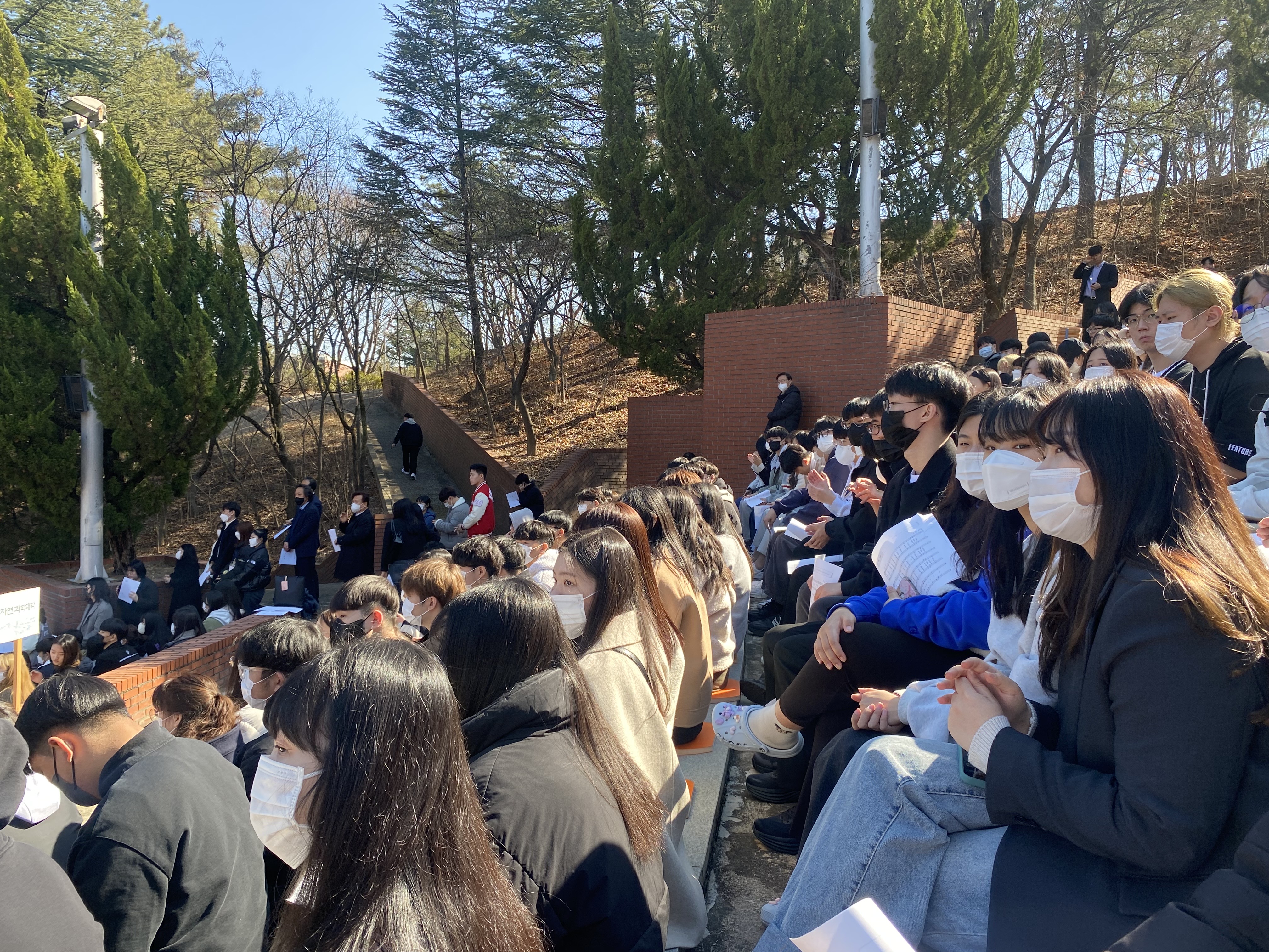 백은관 101호에서 만나 학회장과 집행부와 함께 노천강당으로 이동했습니다!